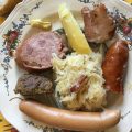 Mit dem Sauerkraut wird vor allem “Choucroute garnie” vorbereitet, das heißt mit Wurst und Fleisch aber es gibt auch Sauerkraut mit Fisch, Sauerkrautsuppe oder Sauerkrautsalat. Mein Rezept für den traditionellen elsässischen Sauerkraut finden Sie HIER.