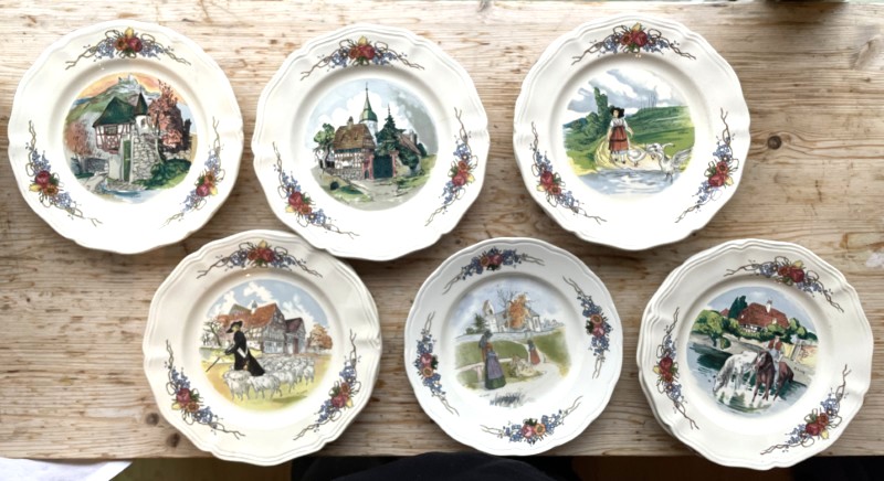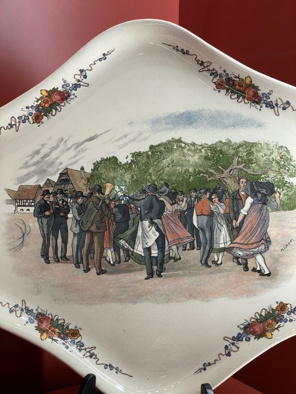 Die Szenen des Services zeigen mehr als 15 Dörfer und 56 Motive. In den Bildern wurde die Seele des ländlichen Elsass am Ende des 19. Jahrhunderts verewigt.