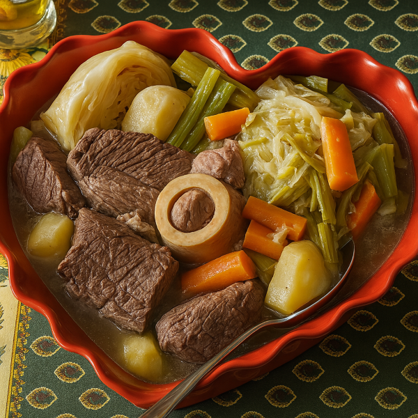 Der französische Eintopf Pot-au-feu erhält seinen Geschmack durch lange geschmortes Rindfleisch mit Gemüse der Saison. Dieses Gericht ist nicht nur preiswert, da es erschwingliche Fleischstücke zur Geltung bringt, sondern auch praktisch, da es aus einer schmackhaften Brühe besteht, die als Vorspeise serviert wird, und aus Fleisch und Gemüse, die den Kern des Hauptgerichts bilden. Entdecken Sie dieses einfache und herzerwärmende Rezept, das die ganze Familie begeistern wird!